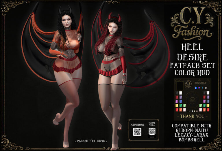 [C.Y<3Fashion] FATPACK HELL DESIRE – NEW [C.Y<3Fashion] 😈🔥 C.YFashion – HELL DESIRE FATPACK (Exclusive) 🔥😈 Surrender to the forbidden allure of HELL DESIRE, the exclusive Halloween Edition A bold and seductive set with Fatpack + Color HUD, designed for those…