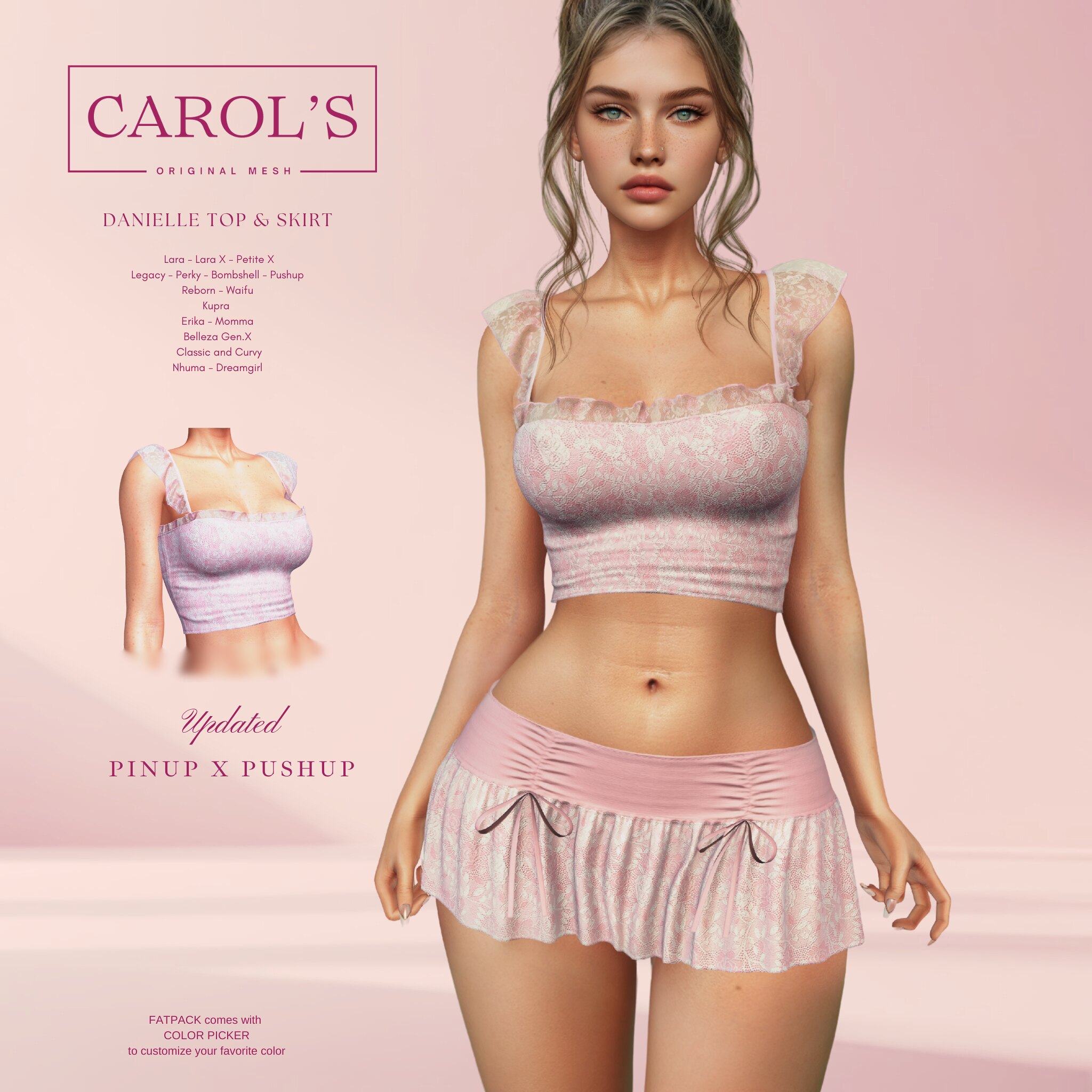 Danielle Top & Skirt is updated for the new Legacy body, Pinup x Pushup! Compatible with: