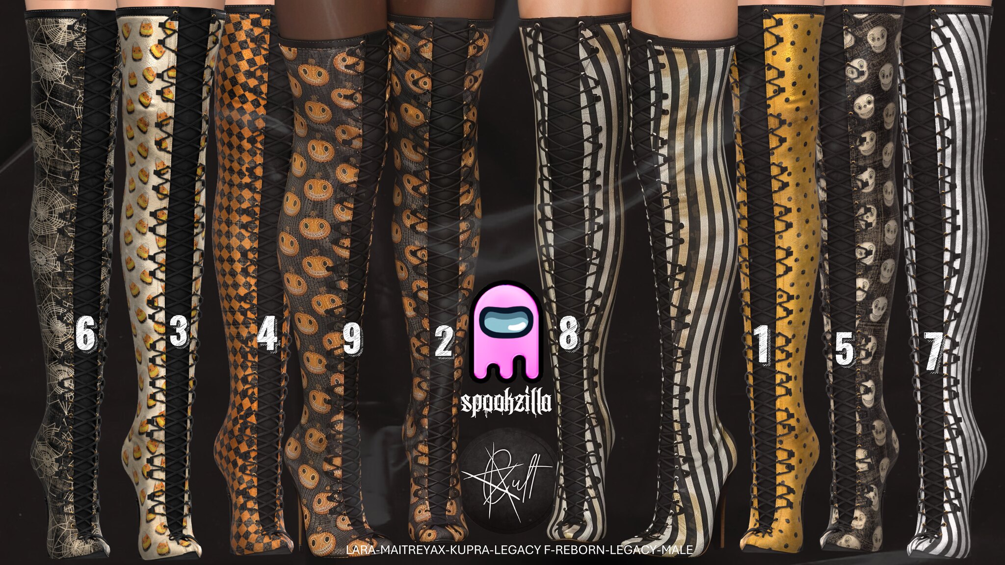 Here is Cult’s Key for the Spookzilla Hunt!. These are rigged for Reborn, Kupra, Legacy Female, Maitreya X, Maitreya OG, and Legacy Male. Also comes with a Fatpack color hud! The Spookzilla event opens on October 20th!